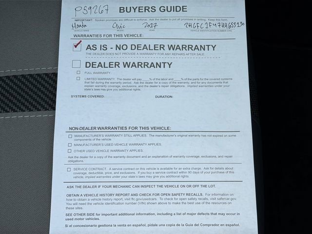 2017 Honda Civic EX-T w/Honda Sensing CARFAX One-Owner. 32/42 City/Highway MPG